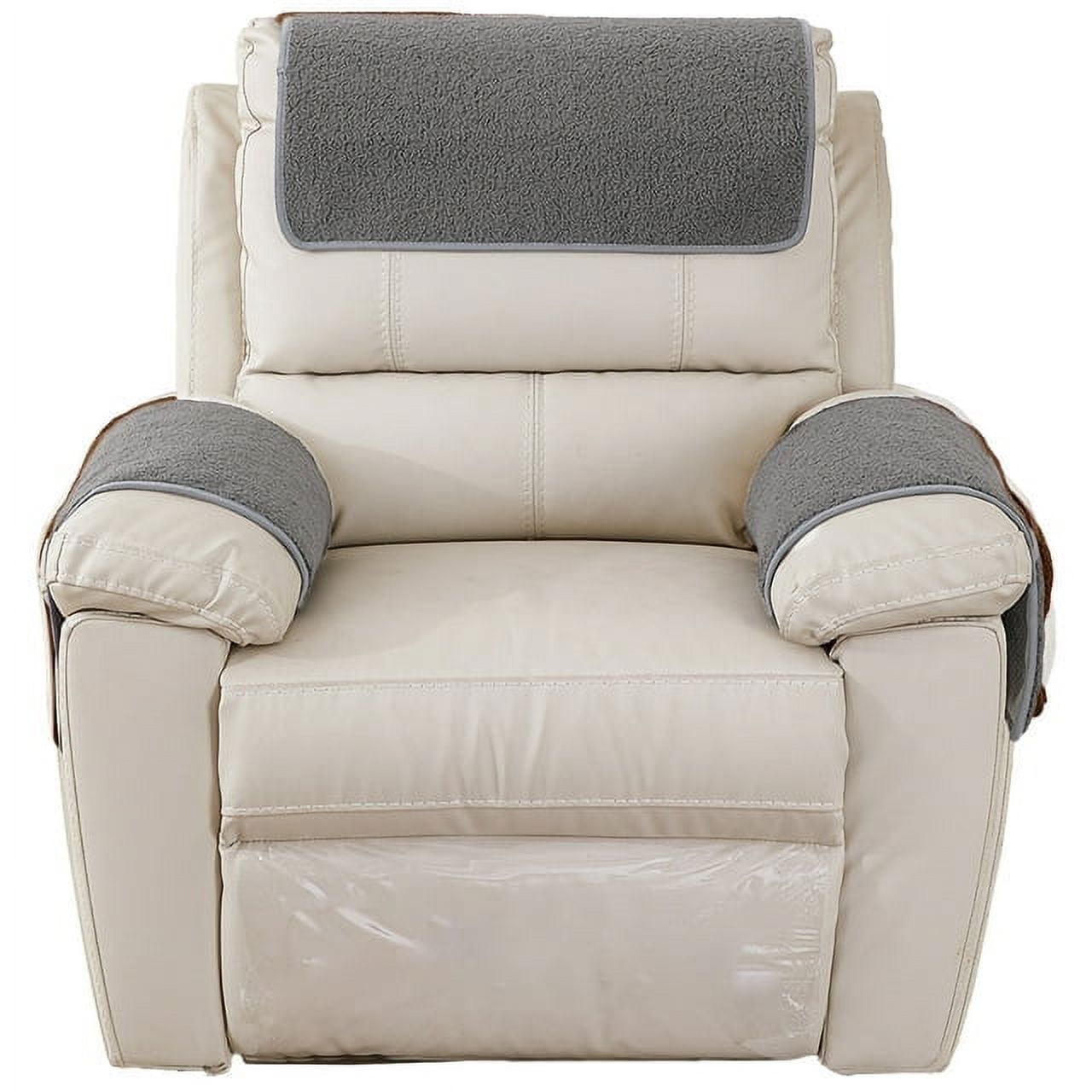 Dznils 3 Pieces Recliner Headrest Covers Sherpa Couch Sofa Slipcover Furniture Protector, Gray
