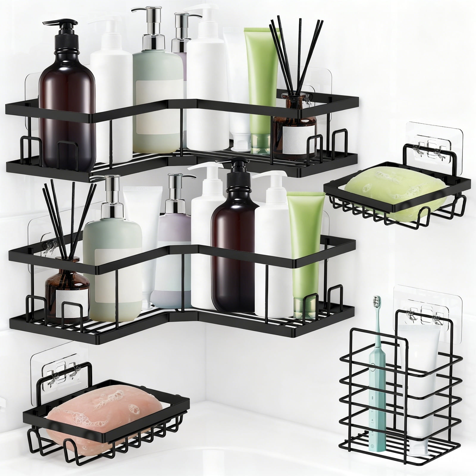 Dznils Adhesive Shower Caddy Corner 5 Pack, Large Capacity No Drilling Wall-Mounted Bathroom Organizer Basket, Black