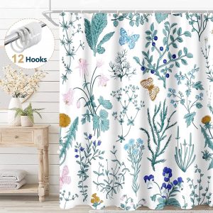 Dznils Blue Floral Fabric Shower Curtain, Waterproof Bathroom Curtain with 12 Hooks, 72″ x 72″