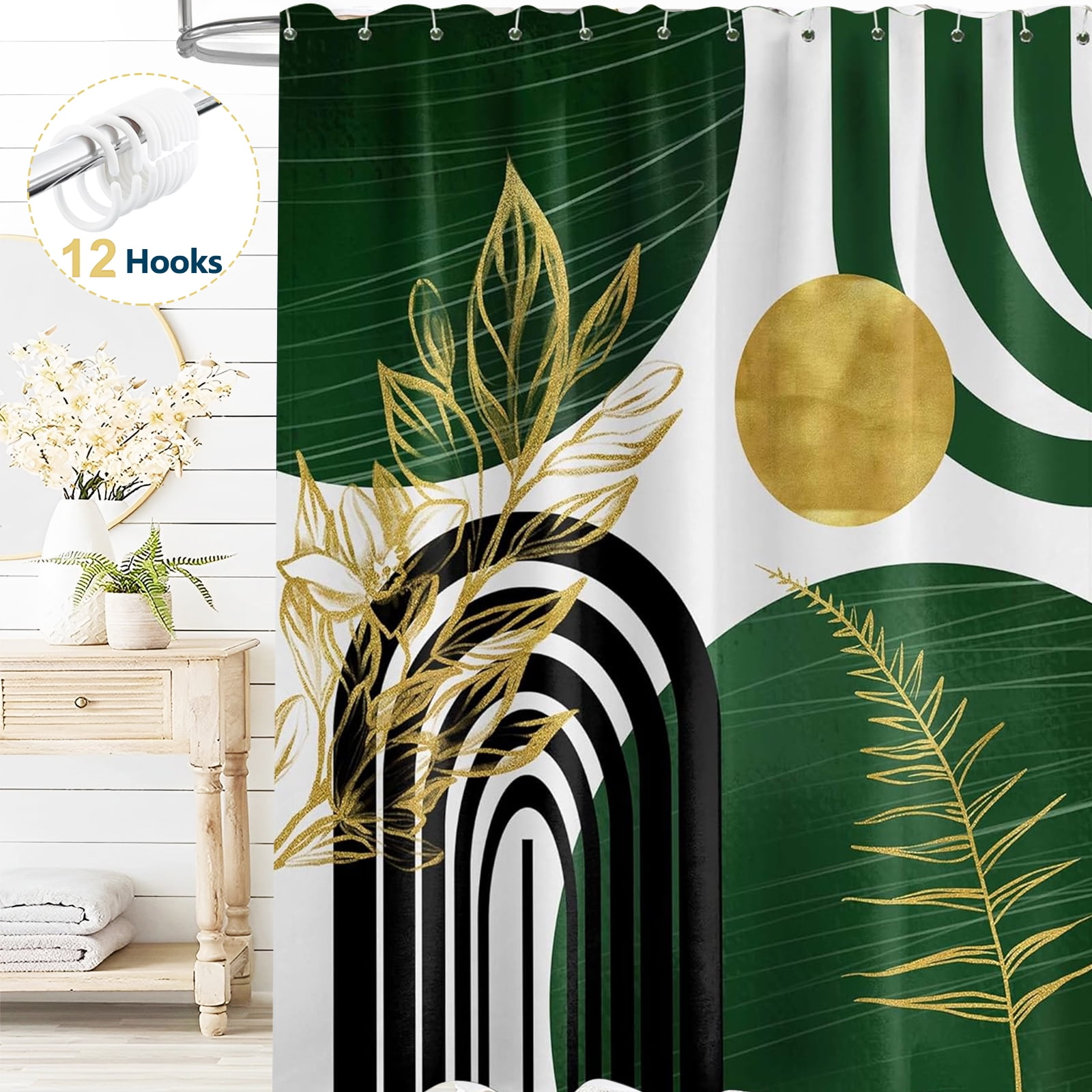 Dznils Boho Shower Curtain with Hooks, Modern Abstract Fabric Bathroom Curtain, 72″ x 72″, Green