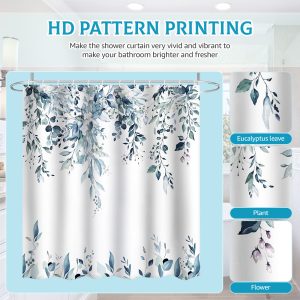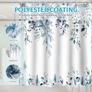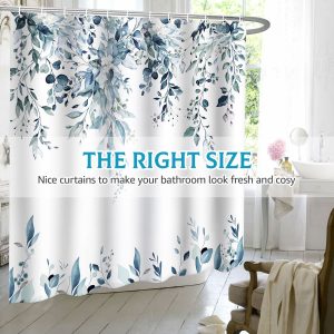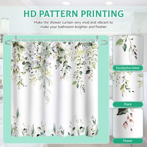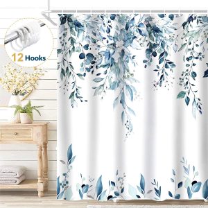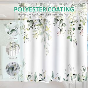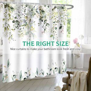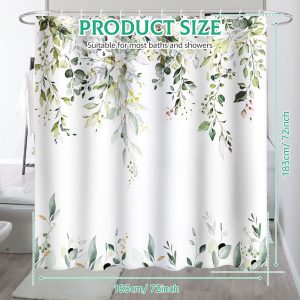 61 reviews for Dznils Green Eucalyptus Fabric Shower Curtain, Watercolor Floral Pattern with Hooks, 72″ x 72″
