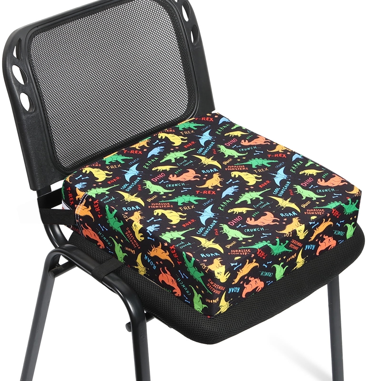 Dznils Toddler Booster Seat for Dining Table, with Safety Buckles, Non-Slip Bottom, Black Dinosaur