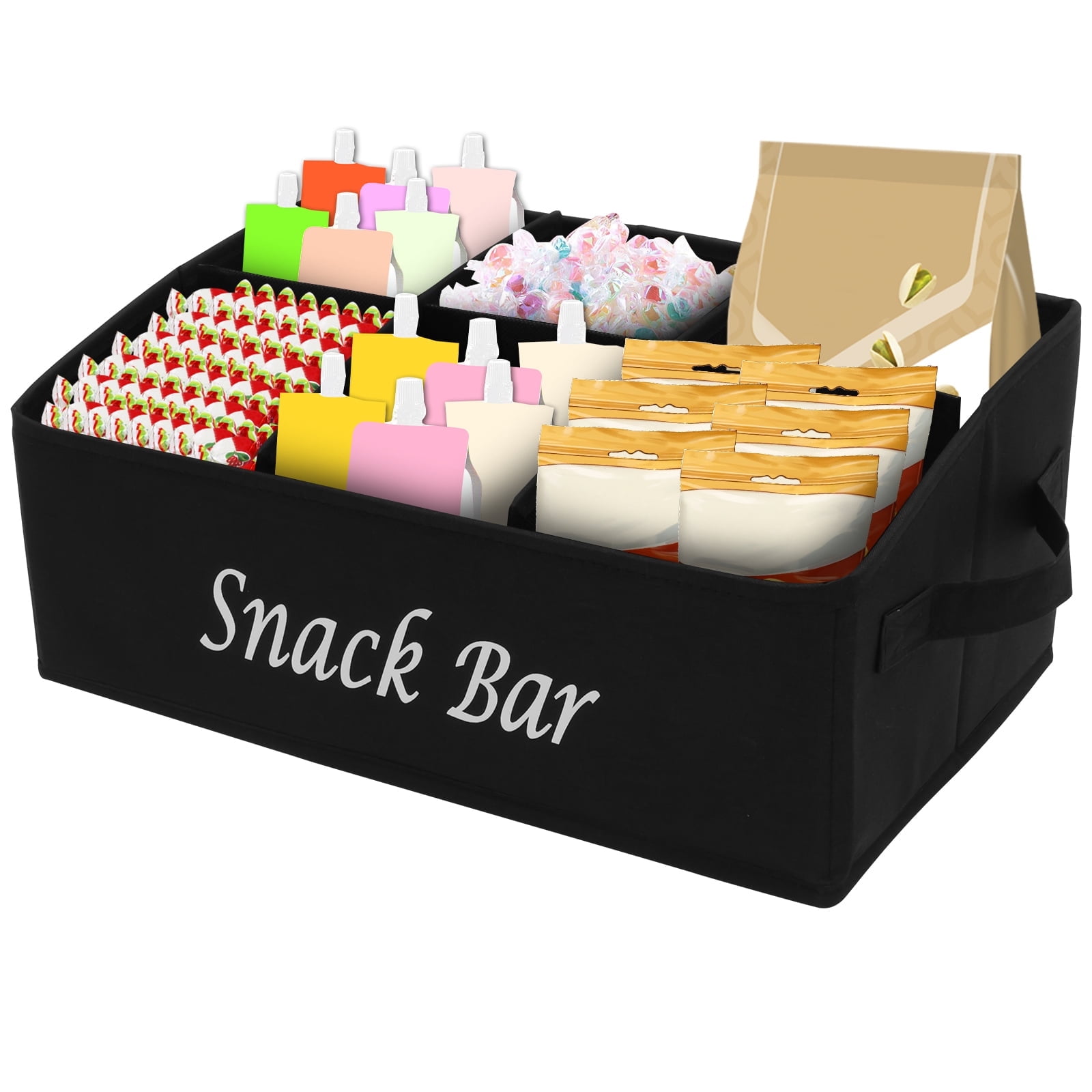 Grusce Snack Organizer for Countertop Fabric Snack Basket Organizer with Handles 6 Compartments Candy Storage Bins for Cookies Drinks
