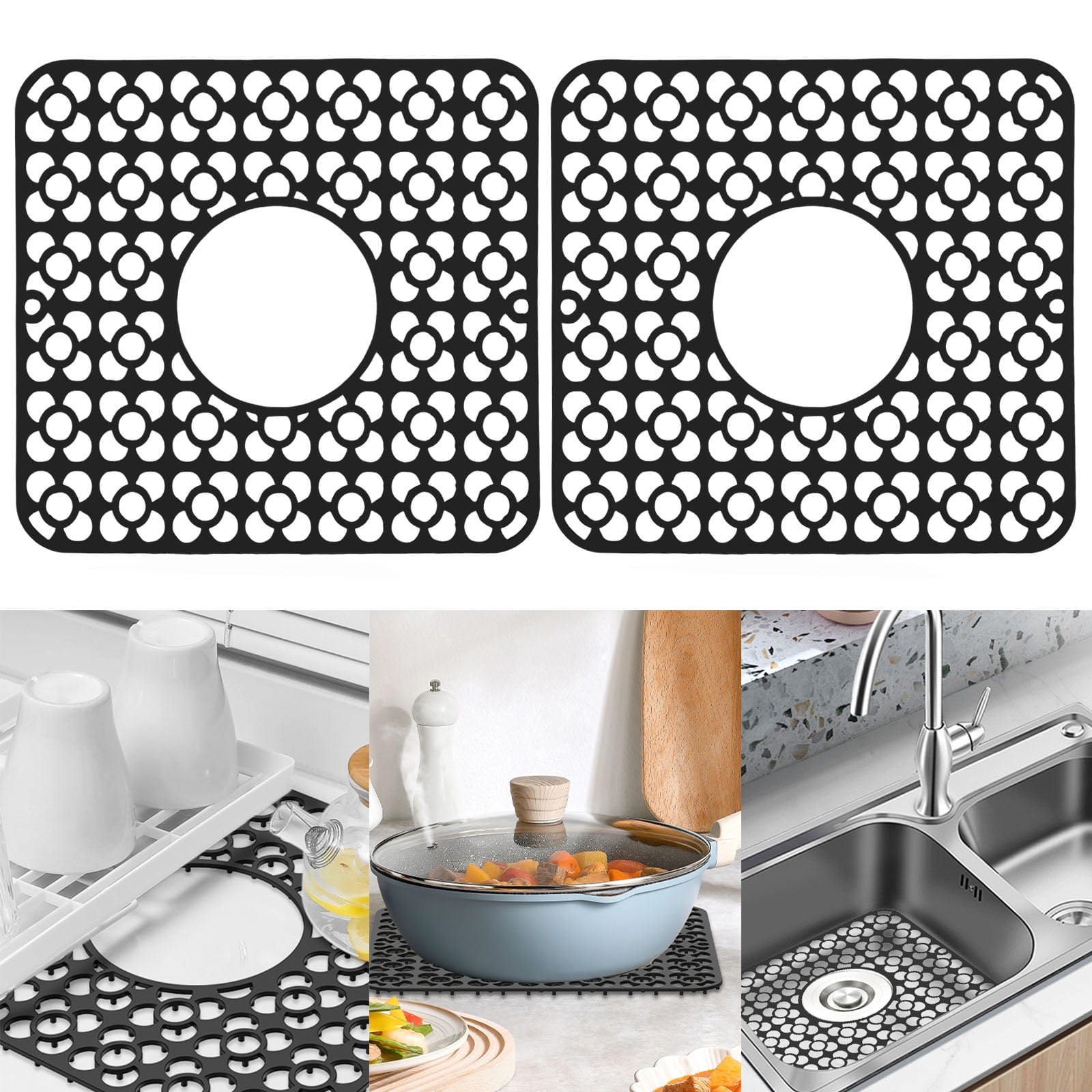 Compatible with Various Sinks: The kitchen sink protection mat measures 31.1×29.2×0.7cm , suitable for common sinks . It can be flexibly placed in single or double basin sinks , providing convenience for different kitchen layouts and having strong practicability