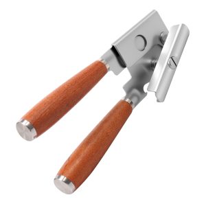 – This can opener is designed with wood handle which has grain and beauty of the wood.