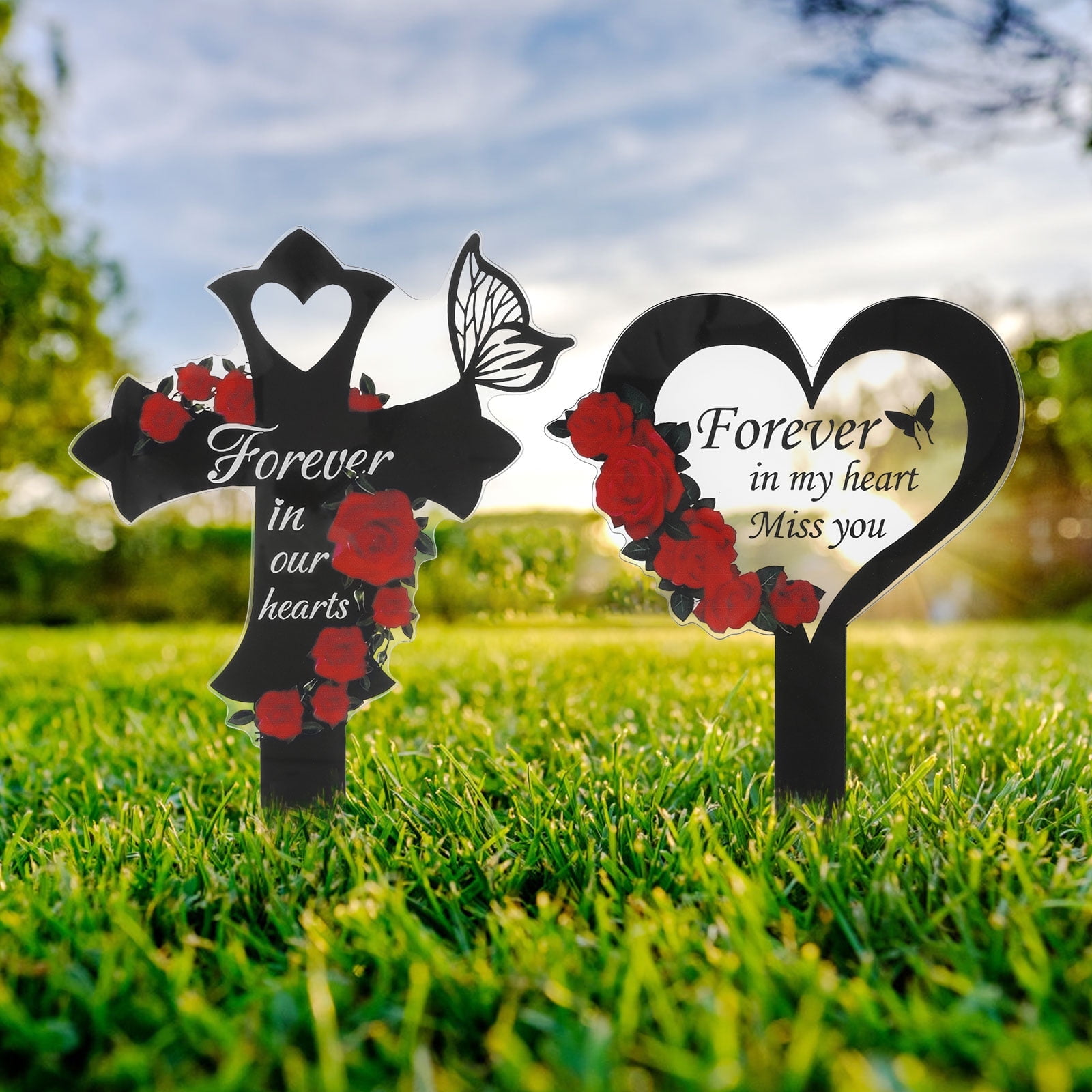 Txkrhwa 2PCS Cross Grave Markers for Cemetery Decoration Memorial Gift, Acrylic Memorial Stakes for Cemetery, Sympathy Garden Stake Cemetery Memorial Sign Outdoor Floor Mount for Yard Garden