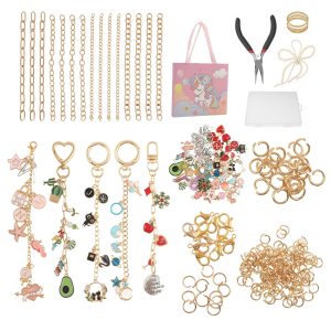 Set Includes : Includes 117 zinc alloy pendants in random styles , 1 pearl chain , 20 extender chains in 4 styles , 15 keychain clips in different shapes , 10 fish hook clasps , 150 open jump rings in 3 sizes , as well as an open jump ring tool and jewelry pliers , with a total of over 300 components