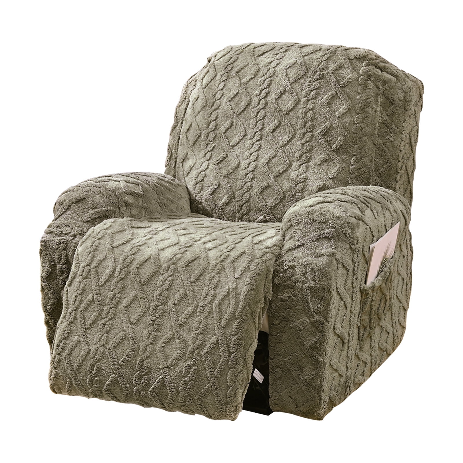 Lzvxtym Recliner Chair Covers,4 Pcs Recliner Slipcovers,Non Slip Elasticity Covers for Chair with Pocket,Soft Fuzzy Couch Covers for Home,Green