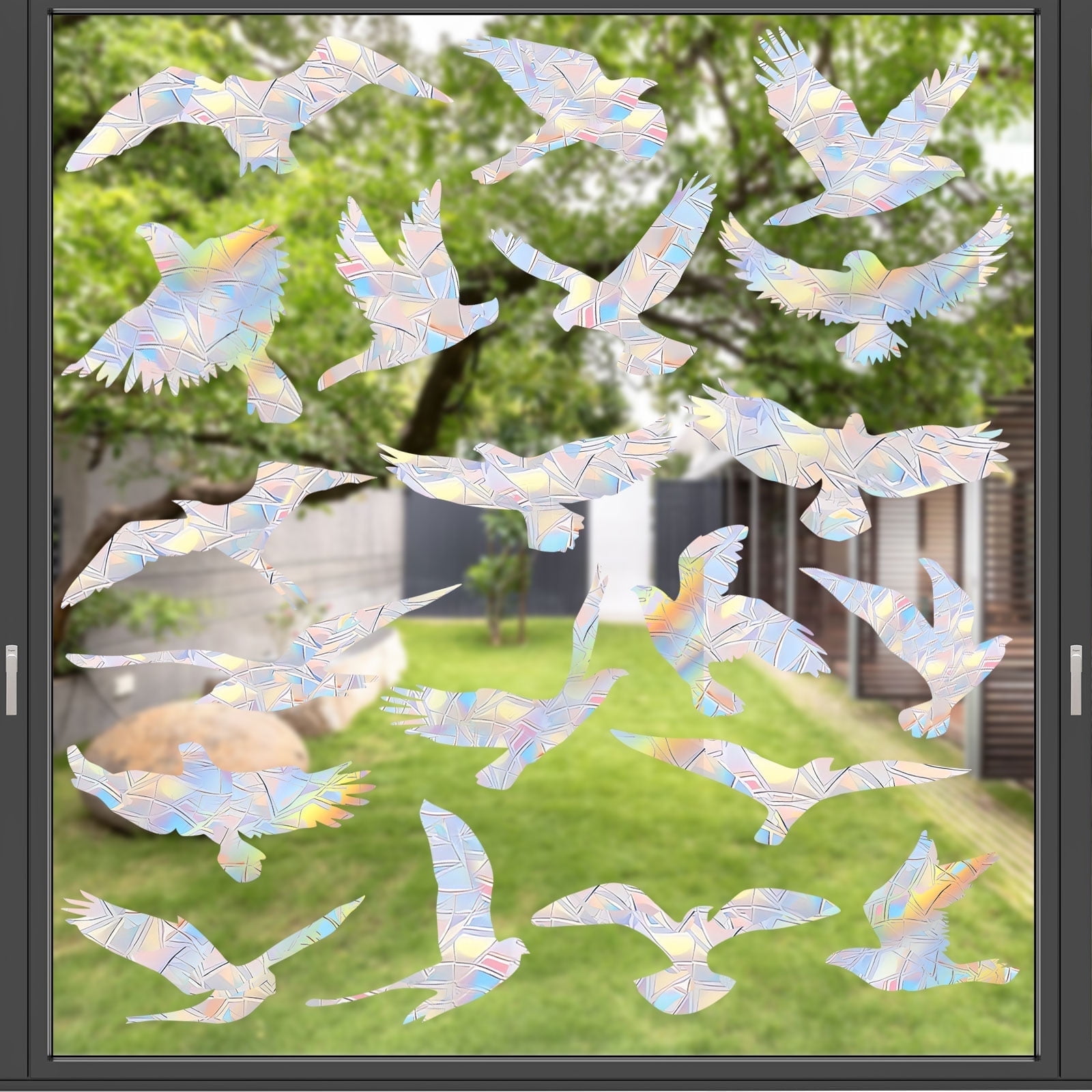 NUAHRHY 20Pcs Bird Window Stickers Anti-Collision Bird Window Decals Reusable Prism Bird Window Clings Static Non Adhesive Bird Decals Prismatic Bird Window Stickers for Bird Strikes Windows