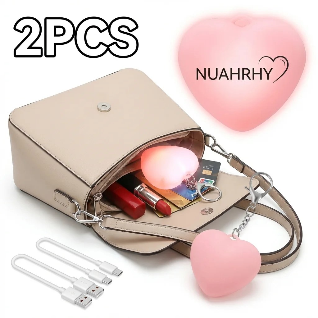 NUAHRHY 2pcs Purse Glow Heart Light LED Automatic Sensor Purse Light Touch Activated Handbag Light Portable Handbag Night Light Mini Handbag Purse Lamp for Women Girls Pink Heart