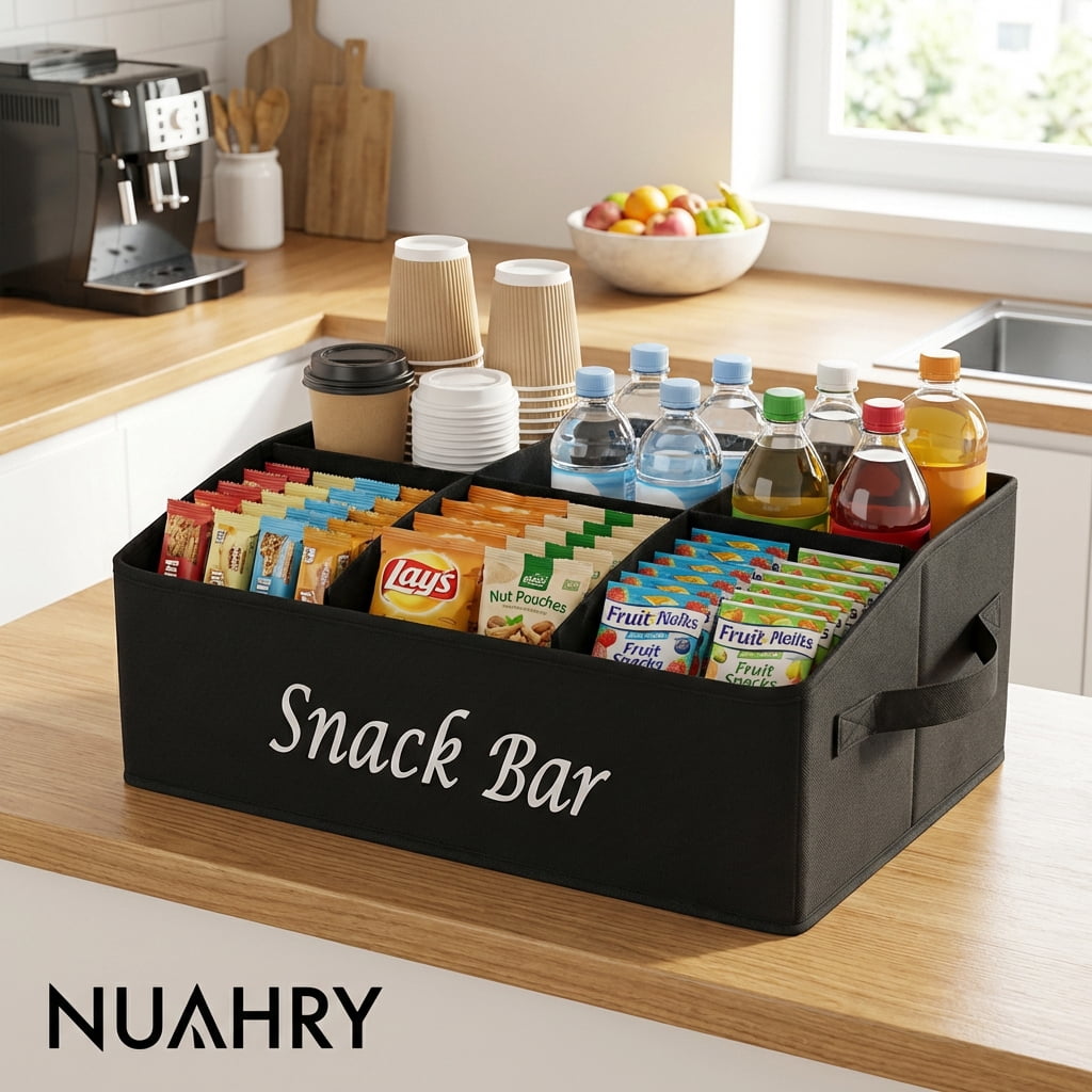 Be the first to review “NUAHRHY Snack Organizer for Countertop Fabric Snack Basket Organizer with Handles 6 Compartments Candy Storage Bins for Cookies Drinks”