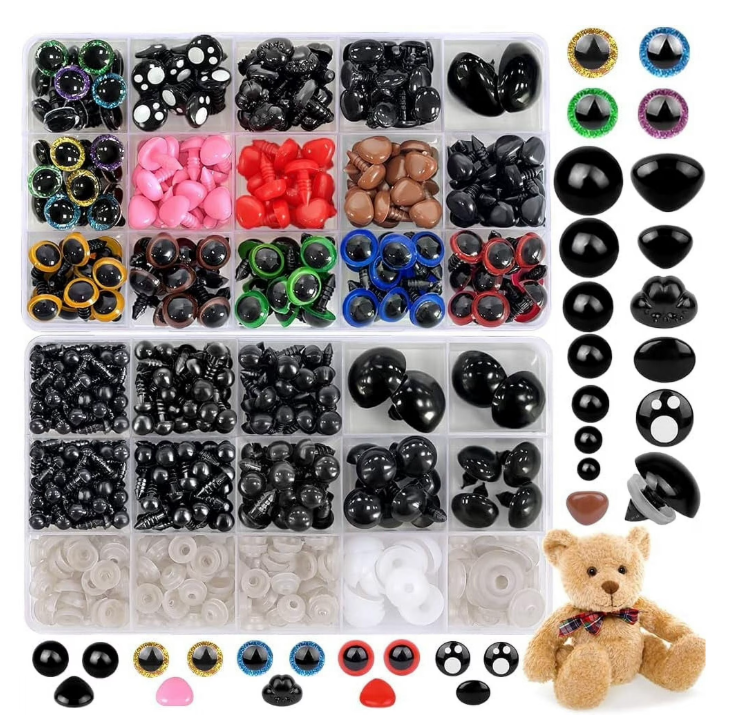 Package Including:<br />1 Set Safety Eyes and Noses (1040pcs in total)<br /><br />Highlight description:<br />The perfect gift: This is the perfect DIY activity for the family. Not only can you use them to prepare a variety of dolls for your child as gifts, but you can also promote your child’s hands-on skills and interests!<br /><br />High quality material: Made of high quality ABS plastic, polished well, smooth surface. Comes with a storage case for easy storage and portability, very easy to pick up eyes and nose.<br /><br />You can try your hand at designing cute dolls in your own way, and the finished product can be a meaningful gift to the loved one at the center of your life; Caution: Keep away from children to avoid swallowing.<br /><br />After fine polishing process. Smooth and glossy surface, not easy to damage. This can make your doll look cuter and more realistic.<br /><br />Easy to operate: With a practical threaded design, these safety eyes can be threaded through plastic washers and securely glued to these washers to keep the eyes from falling out, easy to operate and making your DIY process more enjoyable.<br /><br />Detailed description:<br />Specifications: <br />Product Name: Doll Safety Eyes<br />Material: Plastic<br />Size: as shown<br />Color: as shown<br />Quantity: 1040 pcs/box<br /><br />Note: <br />1. There may be slight differences between the picture and the actual color of the commodity. We will try our best to show you the exact color.<br />2. Please allow slight dimension difference due to manual measurement.