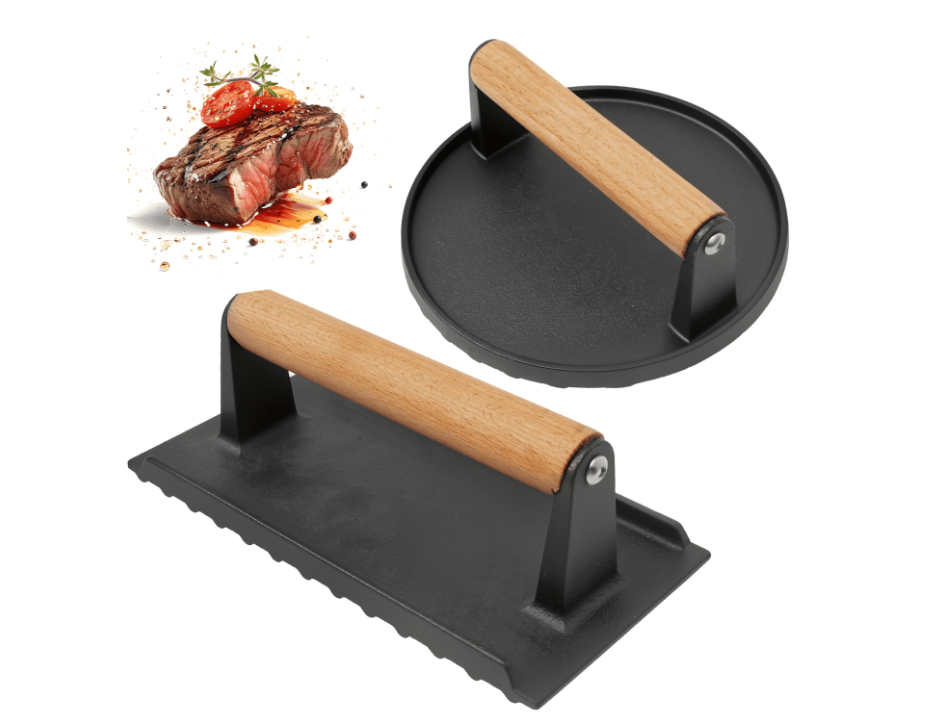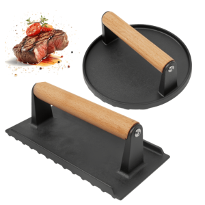 This meat press grill is a remarkable product. Its sturdy construction, crafted from heavy cast iron, gives it the strength to withstand frequent use without cracking or bending. The wood handle design is a good feature. It not only provides excellent heat insulation, protecting your hands from burns.