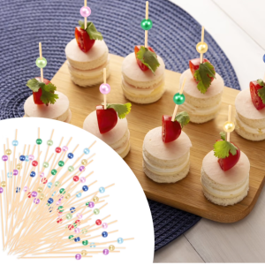 ??Quality?? : These appetizer picks are made of bamboo , which is sturdy and smooth surfaced . The colored beads at the end are crafted from acrylic , designed to provide a better grip and more comfortable use