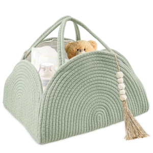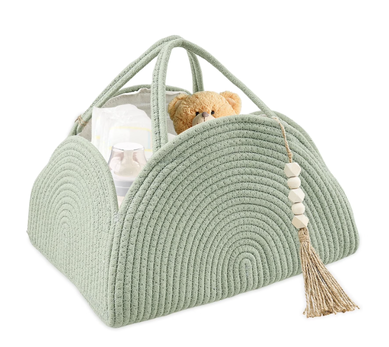 Our cotton rope woven baby diaper caddy is great to store small baby items such as diapers, wipes, lotions, bibs, baby toys, cloth diapers, changing pads and more, large enough for baby necessities or baby nursery essentials.