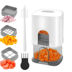 3 Blades : Equipped with 3 sizes of blades , you can cut ingredients to different specifications . It can chop onions , cut potatoes into fries of different thicknesses , and even slice fruits . It meets a wide range of chopping needs