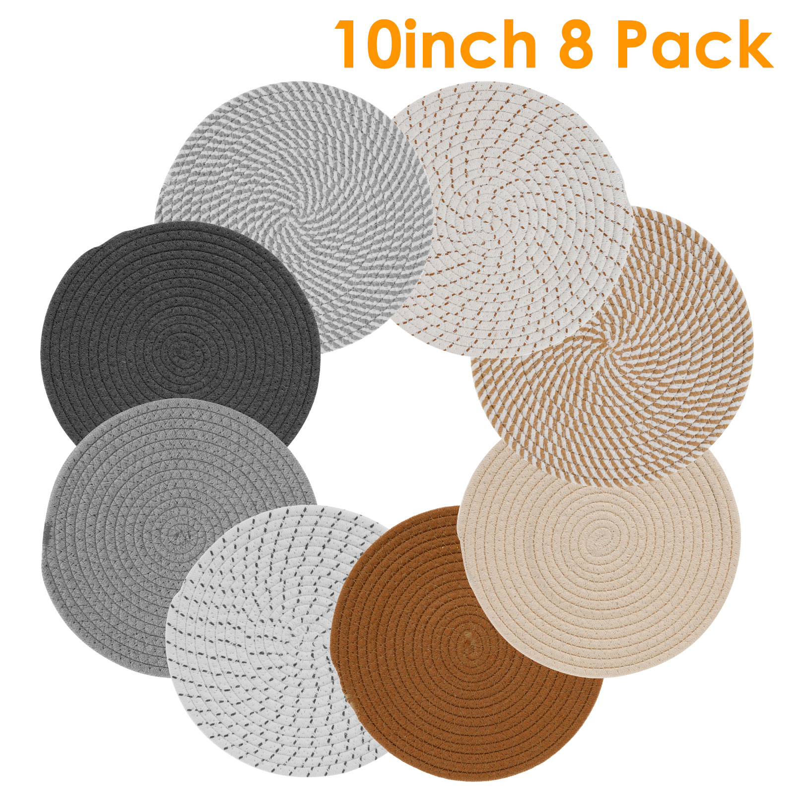 Txkrhwa 10 inch Trivets for Hot Dishes, 8PCS Woven Pot Holders for Table Countertop, Extra Large Trivets for Hot Pots and Pans, Table Place Mats, Thick Heat Resistant Large Coaster for Kitchen, Home