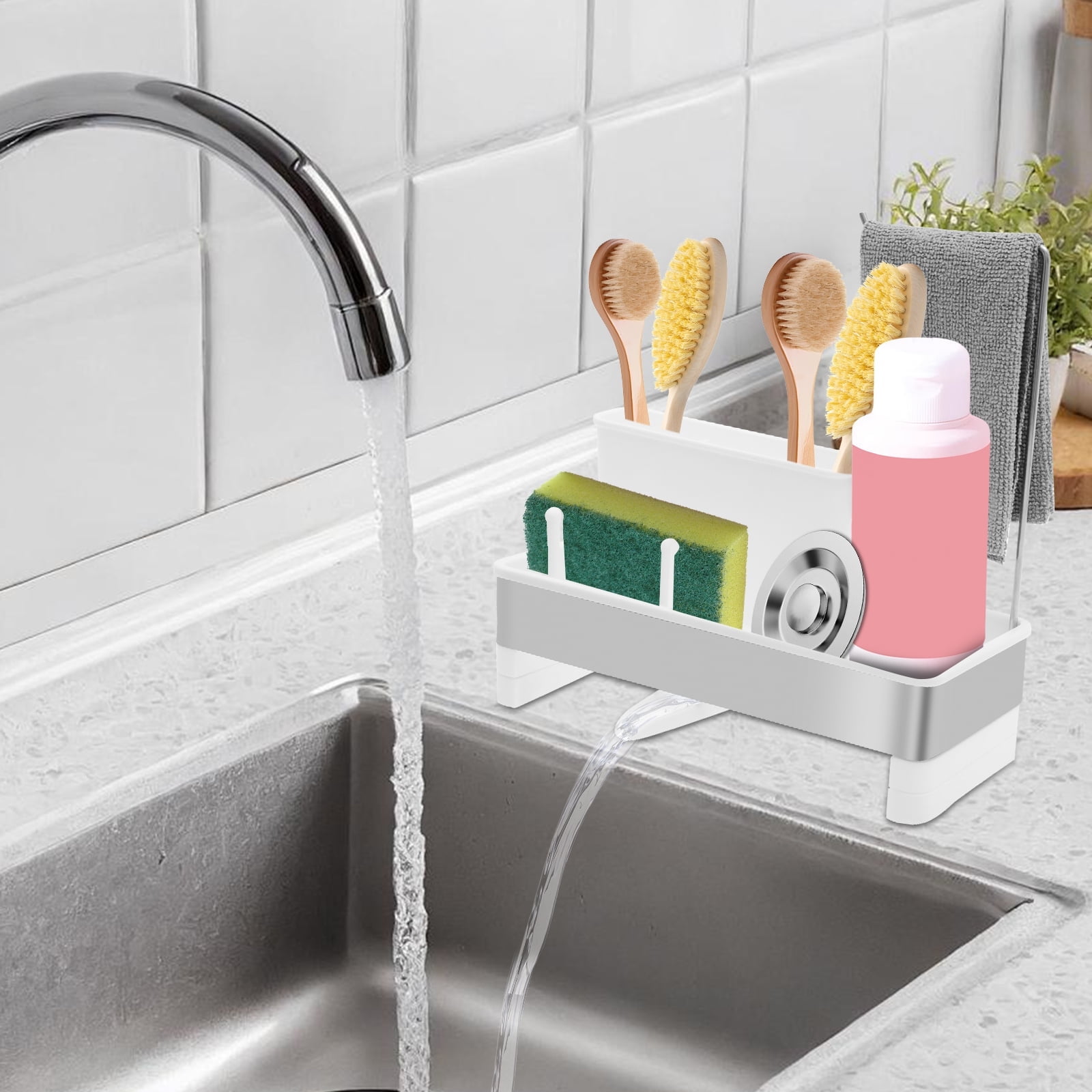 – The kitchen sink organizer Crafted with high-quality stainless steel baffle and reinforced plastic, this sink caddy is exceptionally durable, rust-resistant, and easy to clean, effortlessly wiping away oil stains.