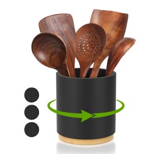 Tzdxfgl 360?? Rotating Bamboo Kitchen Utensil Holder, 6.5” Large Countertop Silverware Organizer, Black
